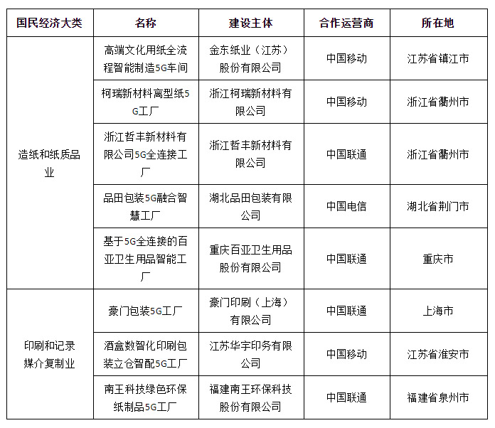 經(jīng)大致統(tǒng)計(jì),在此次擬核定的560個(gè)5G工廠項(xiàng)目名單中,涉及到印刷、包裝、造紙行業(yè)的企業(yè)如下: